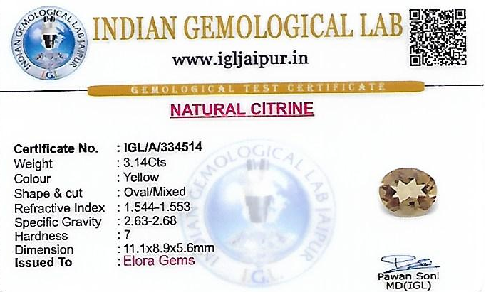 Natural Citrine weighing 3.14 carats In Oval
