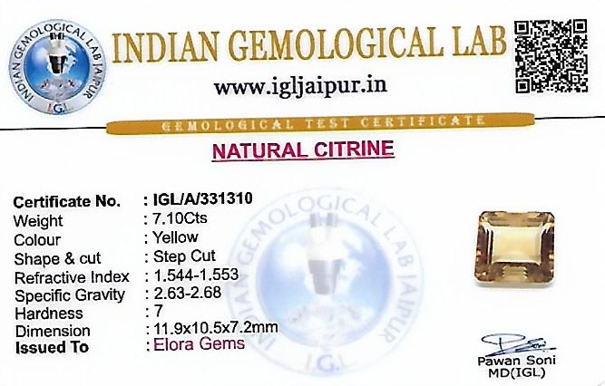 Natural Citrine weighing 7.1 carats