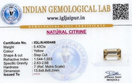 Natural Citrine 14x9 MM weighing - 5.43 carats in Rectangle shape