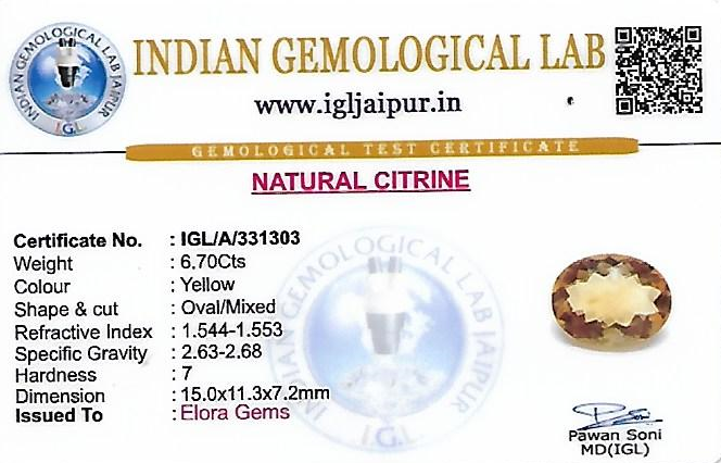 Natural Citrine 15x11 MM weighing - 6.7 carats in Oval shape