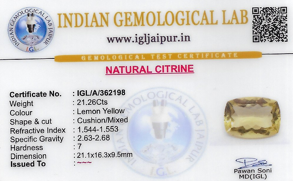 Natural Citrine weighing 21.26 carats In Cushion