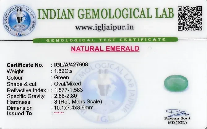 Natural Emerald (Maragadham) weighing 1.82 carats In Oval from Brazil