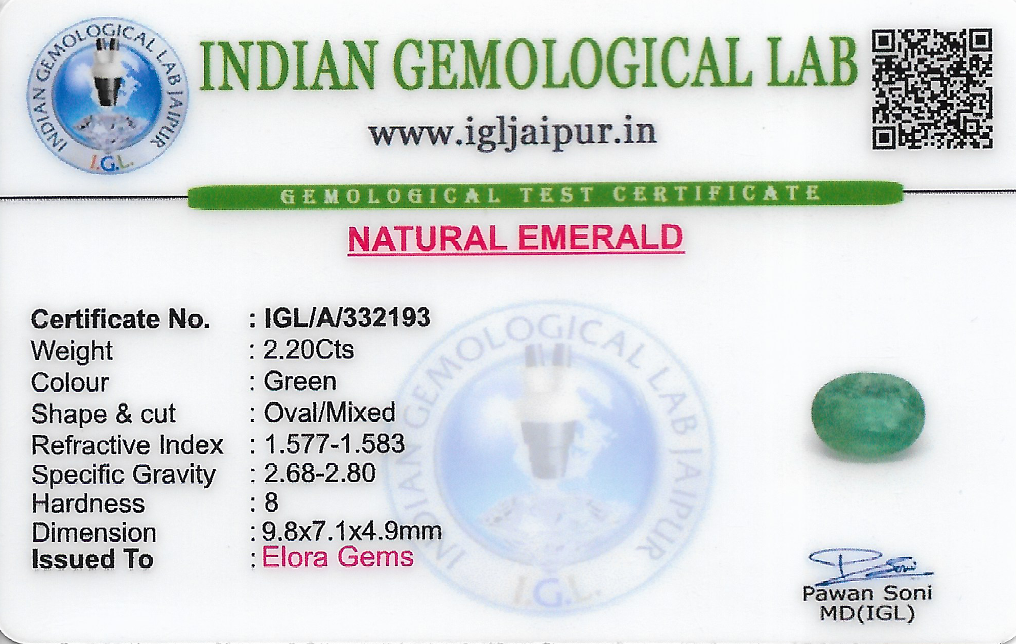 Natural Emerald (Maragadham) weighing 2.2 carats In Oval