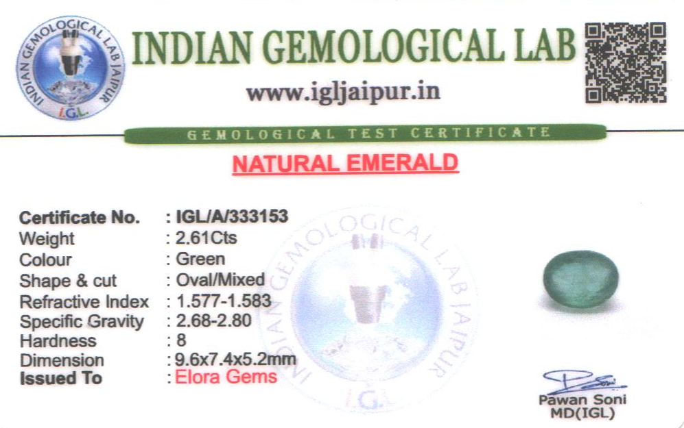 Natural Emerald (Maragadham) weighing 2.61 carats In Oval from Zambia