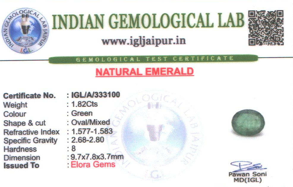 Natural Emerald (Maragadham) weighing 1.82 carats In Oval from Zambia