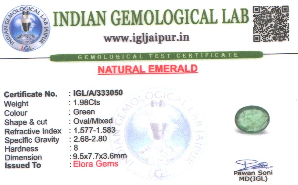 Natural Emerald (Maragadham) weighing 1.98 carats In Oval from Zambia