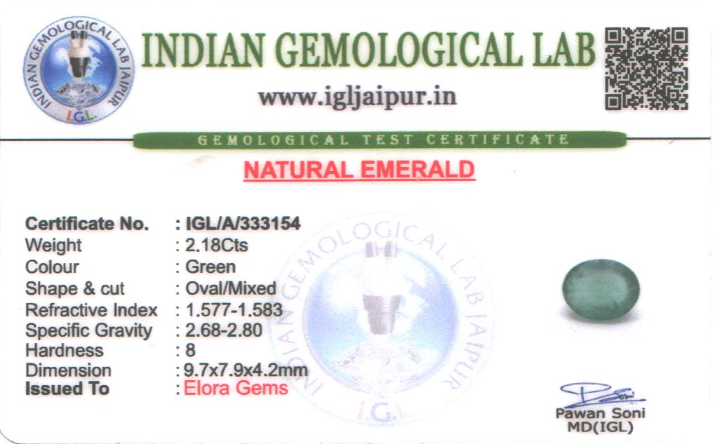 Natural Emerald (Maragadham) weighing 2.18 carats In Oval from Zambia
