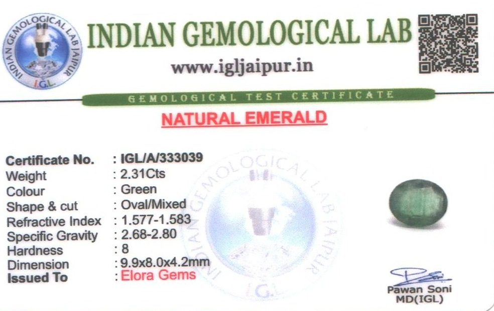 Natural Emerald (Maragadham) weighing 2.31 carats In Oval