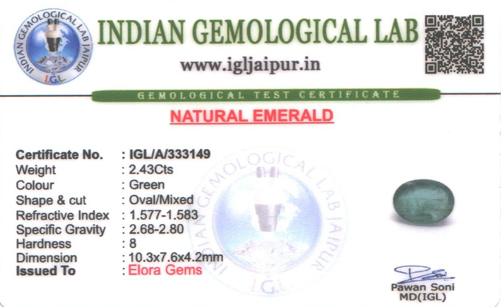Natural Emerald (Maragadham) weighing 2.43 carats In Oval from Zambia