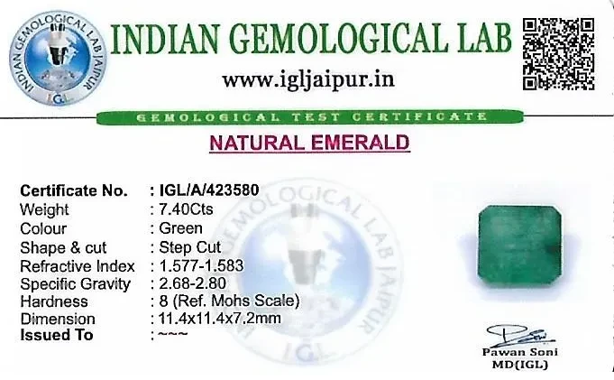 Emerald (Maragadham) 11x11 MM 7.4 carats