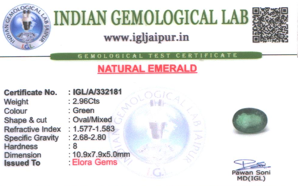 Emerald (Maragadham) 11x8 MM 2.96 carats