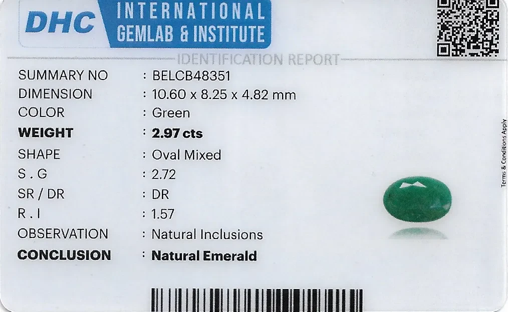 Natural Emerald (Maragadham) weighing 2.97 carats In Oval