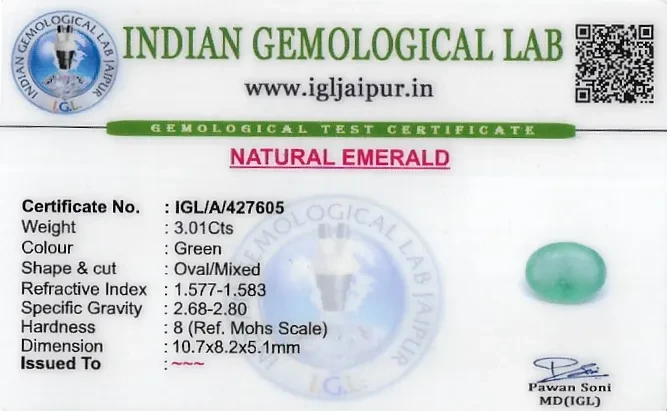 Emerald (Maragadham) 11x8 MM 3.01 carats