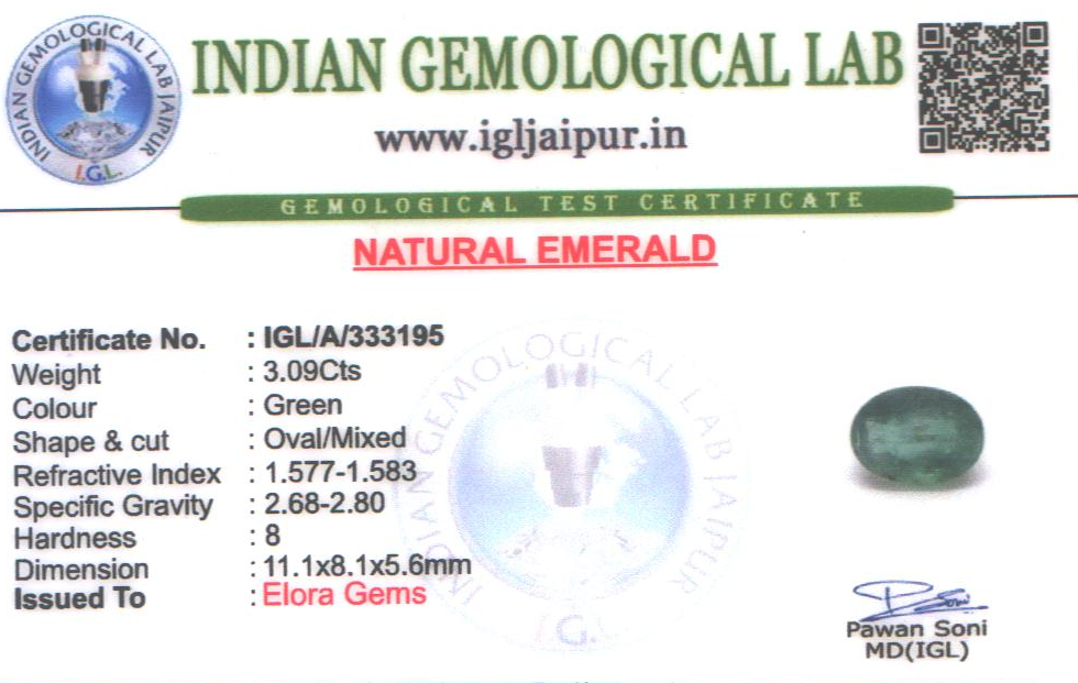 Emerald (Maragadham) 11x8 MM 3.09 carats