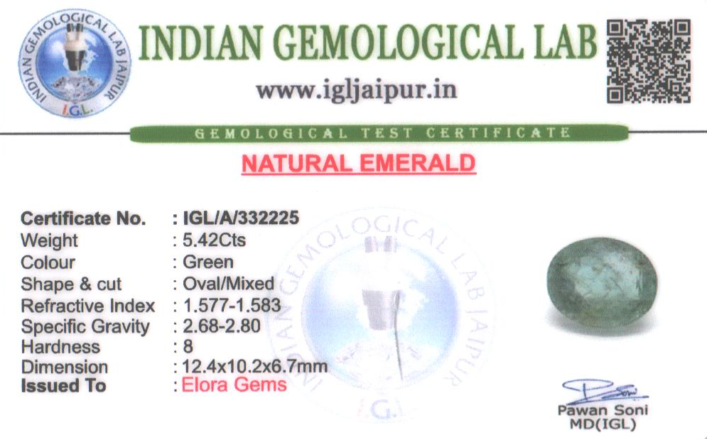 Natural Emerald (Maragadham) weighing 5.42 carats In Oval from Zambia