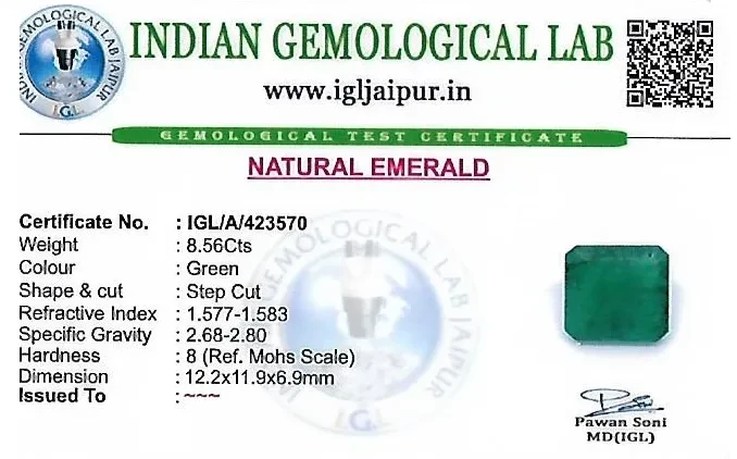 Emerald (Maragadham) 12x12 MM 8.56 carats
