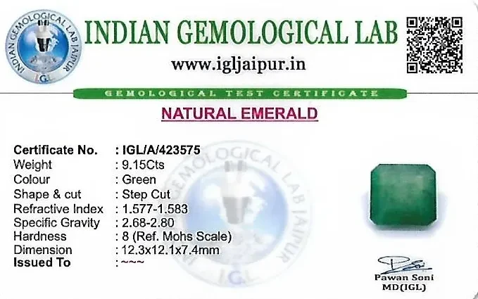 Emerald (Maragadham) 12x12 MM 9.15 carats