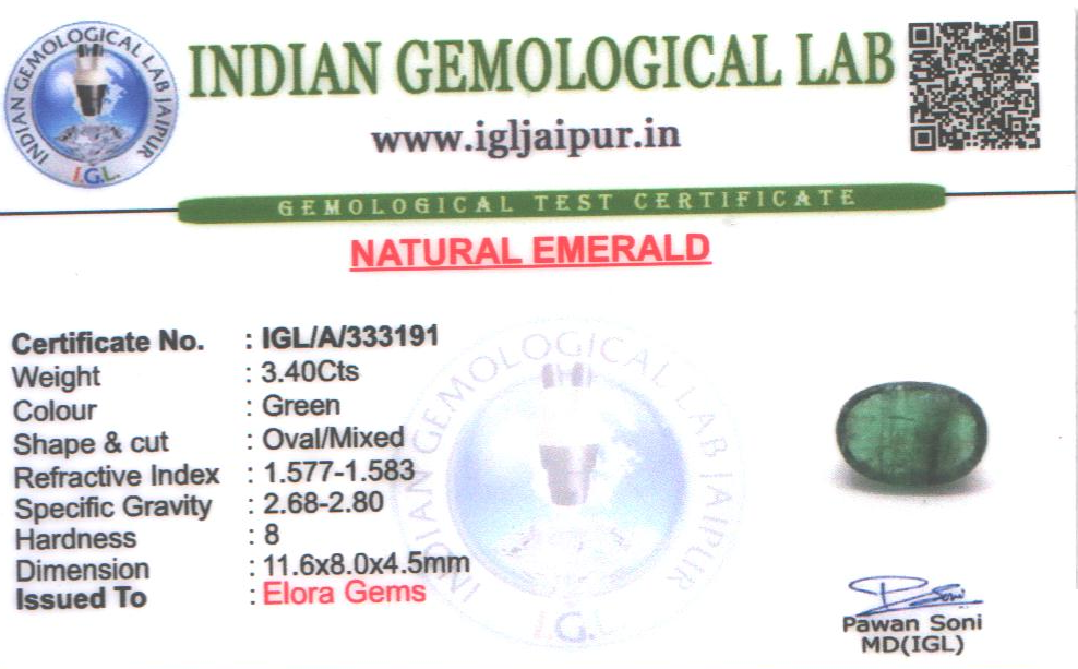 Natural Emerald (Maragadham) weighing 3.4 carats In Oval from Zambia