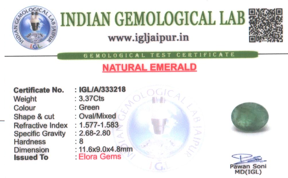Natural Emerald (Maragadham) weighing 3.37 carats In Oval from Brazil