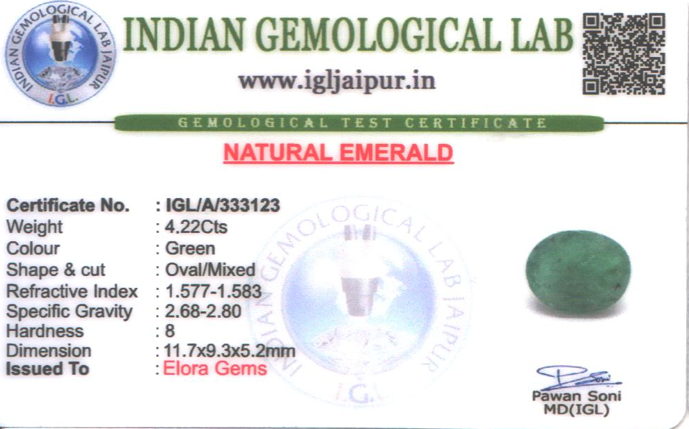 Natural Emerald (Maragadham) weighing 4.22 carats In Oval from Brazil