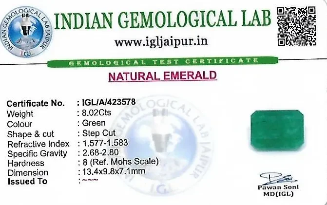 Emerald (Maragadham) 13x10 MM 8.02 carats