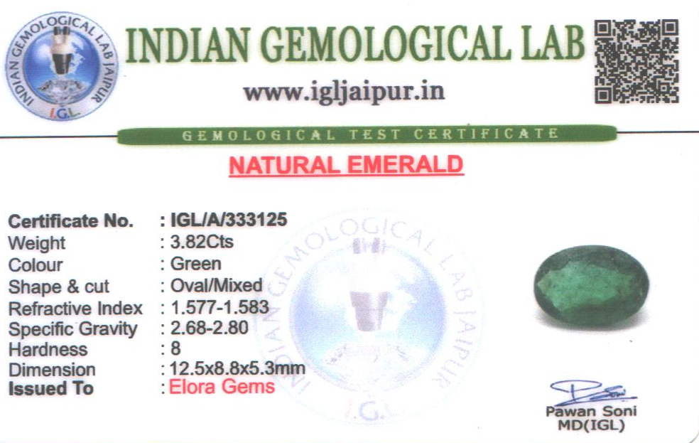 Natural Emerald (Maragadham) weighing 3.82 carats In Oval from Zambia