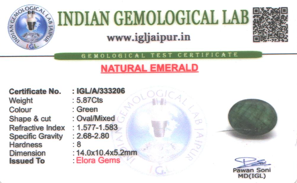 Natural Emerald (Maragadham) weighing 5.87 carats In Oval from Brazil