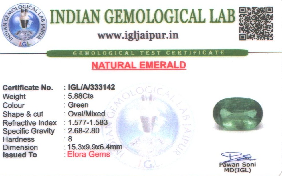 Natural Emerald (Maragadham) weighing 5.88 carats In Oval from Zambia