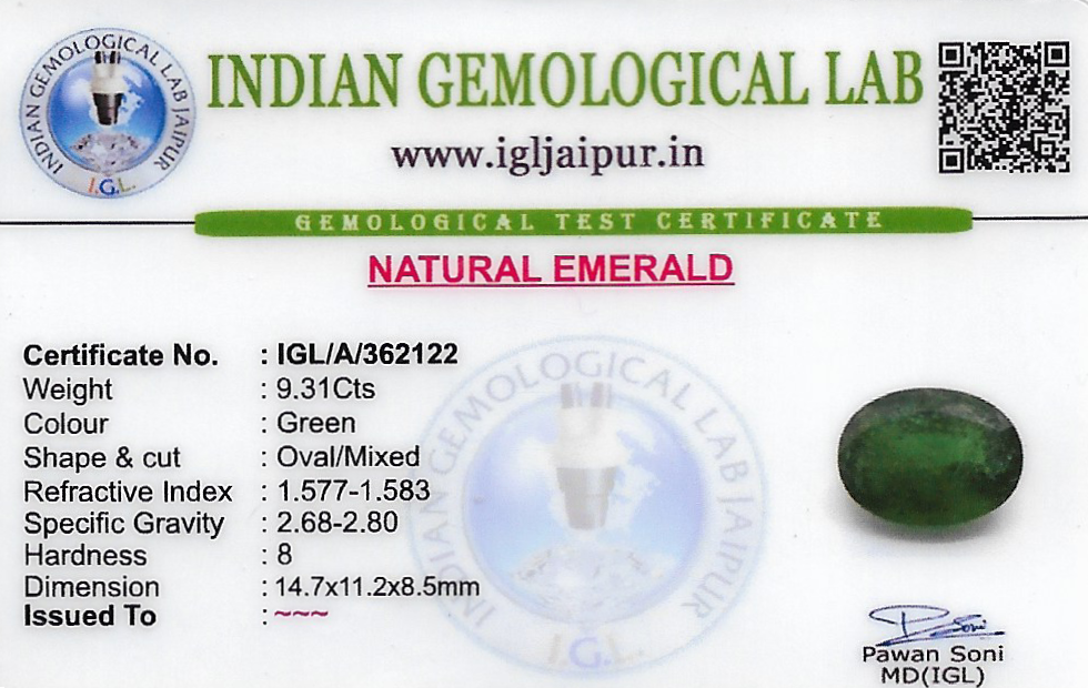 Emerald (Maragadham) 15x11 MM 9.31 carats