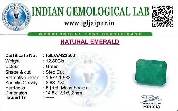 Emerald (Maragadham) 15x12 MM 12.8 carats