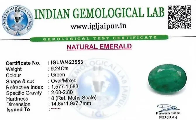 Natural Emerald (Maragadham) weighing 9.24 carats from Zambia