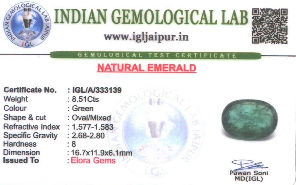 Natural Emerald (Maragadham) weighing 8.51 carats In Oval from Zambia