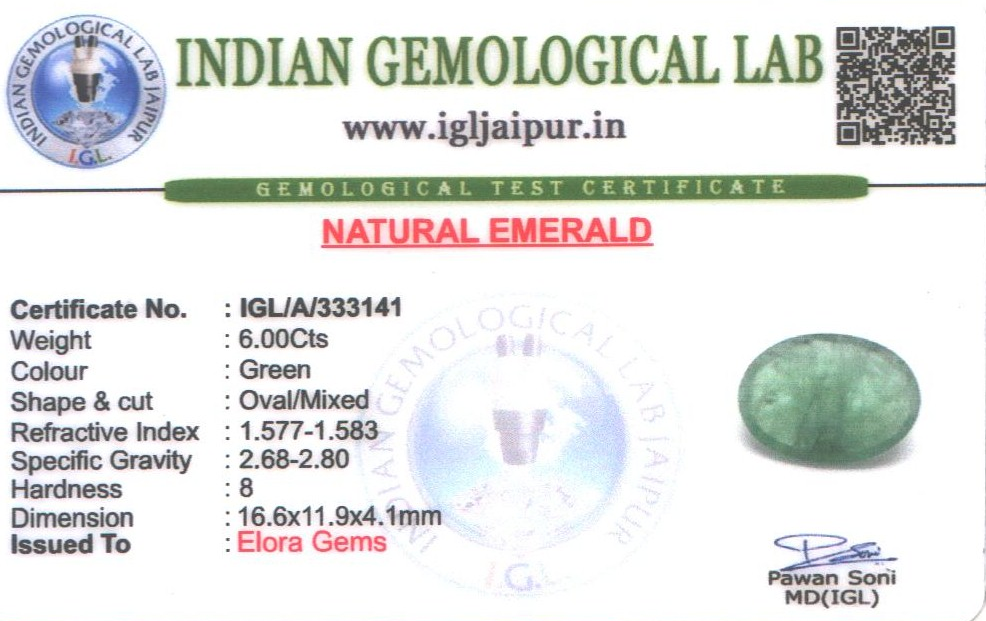 Natural Emerald (Maragadham) weighing 6 carats In Oval from Zambia