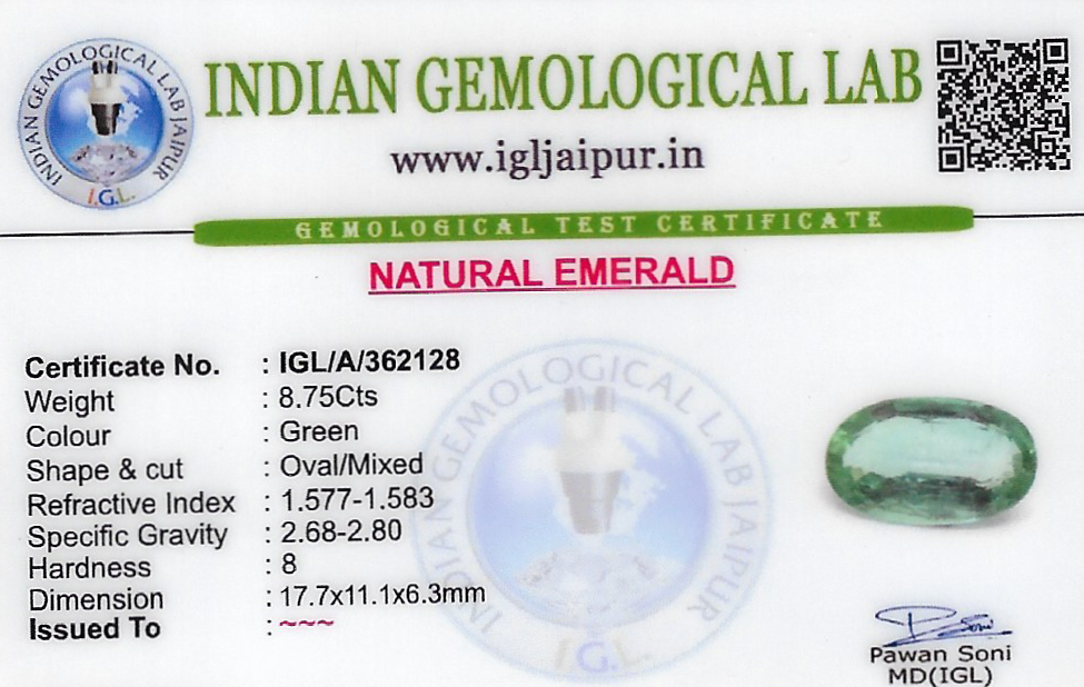 Emerald (Maragadham) 18x11 MM 8.75 carats