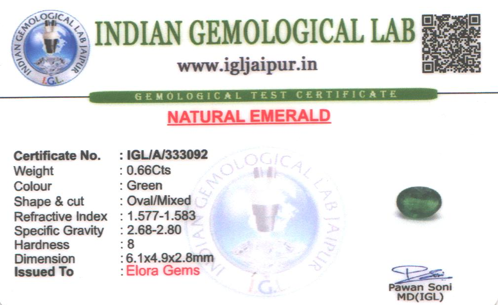 Natural Emerald (Maragadham) weighing 0.66 carats In Oval from Zambia