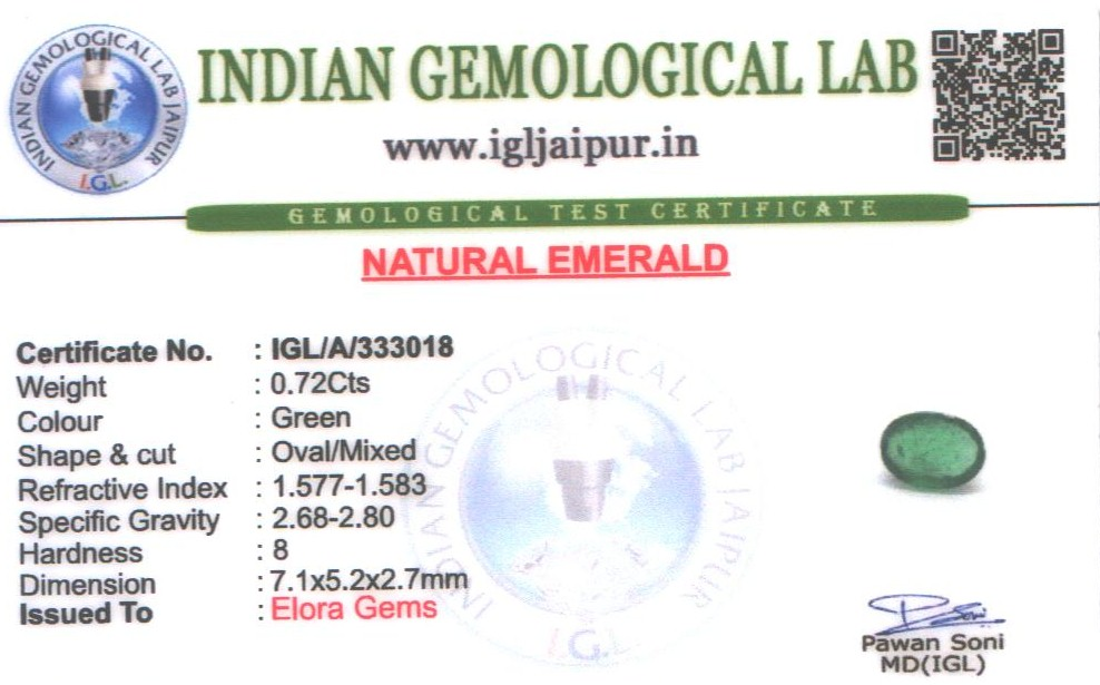 Emerald (Maragadham) 7x5 MM 0.72 carats