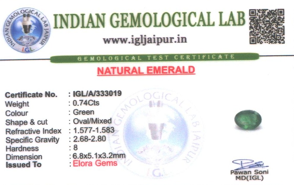 Natural Emerald (Maragadham) weighing 0.74 carats In Oval from Zambia