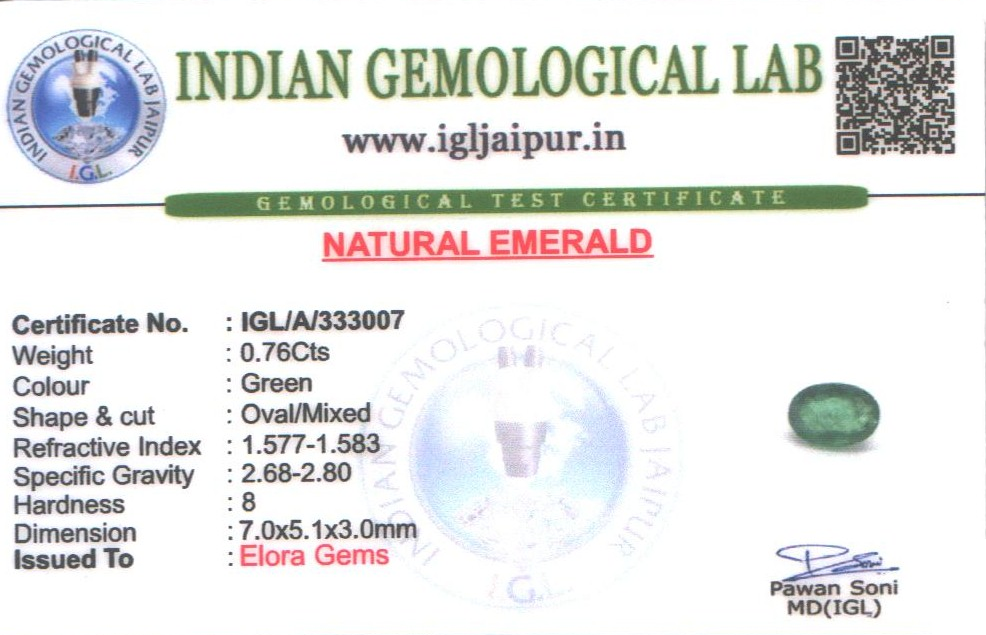 Emerald (Maragadham) 7x5 MM 0.76 carats