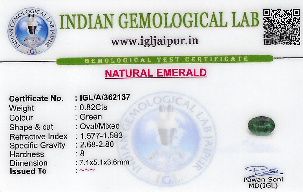 Emerald (Maragadham) 7x5 MM 0.82 carats