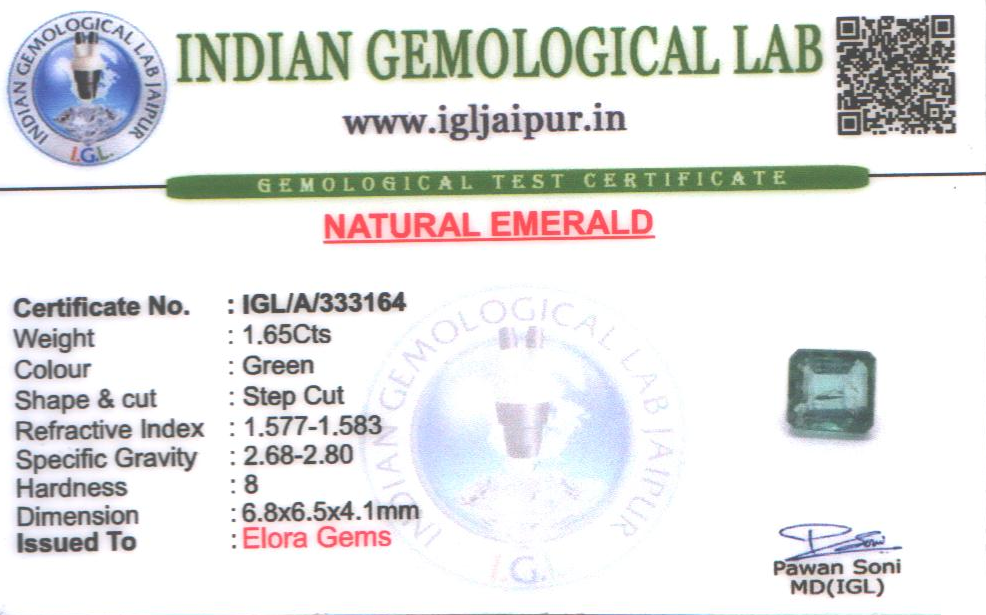 Natural Emerald (Maragadham) weighing 1.65 carats from Zambia