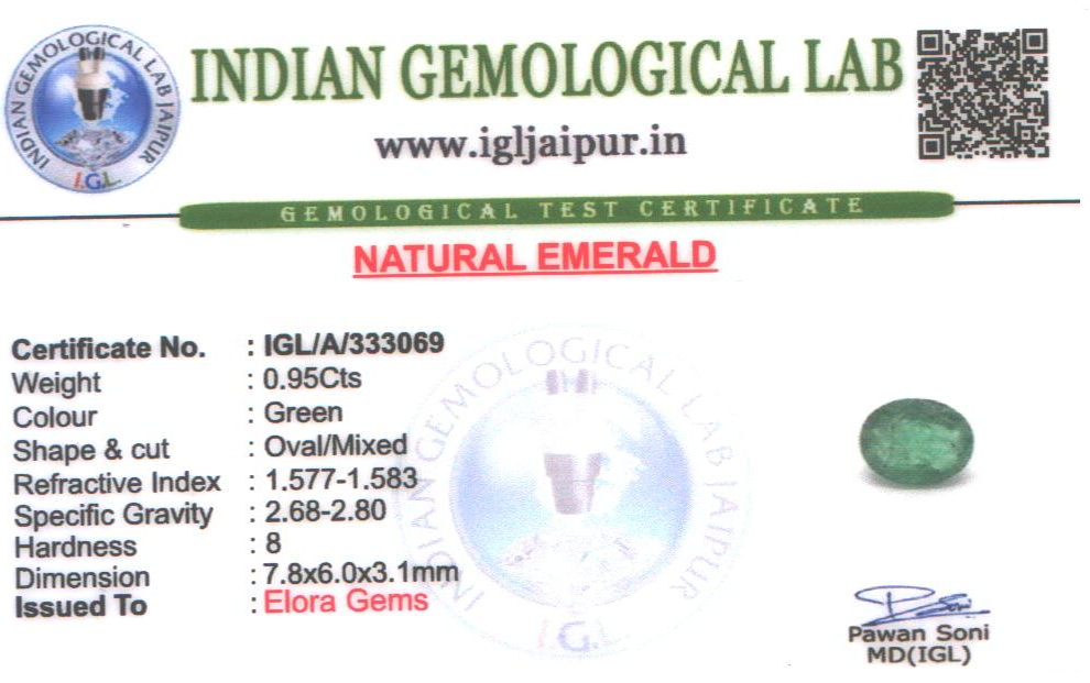 Emerald (Maragadham) 8x6 MM 0.95 carats