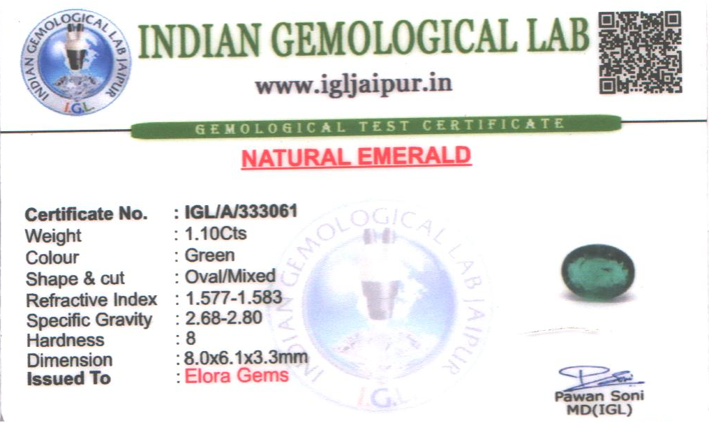 Emerald (Maragadham) 8x6 MM 1.1 carats