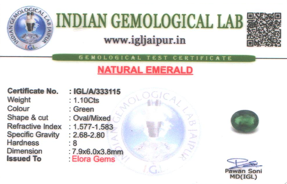 Natural Emerald (Maragadham) weighing 1.1 carats In Oval from Zambia