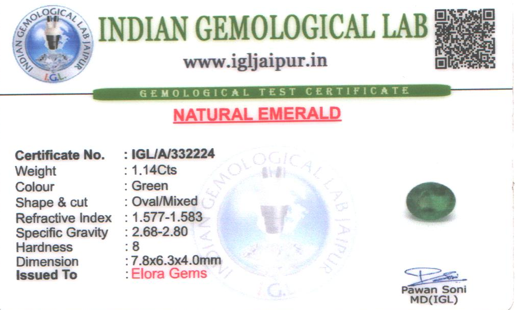 Natural Emerald (Maragadham) weighing 1.14 carats In Oval