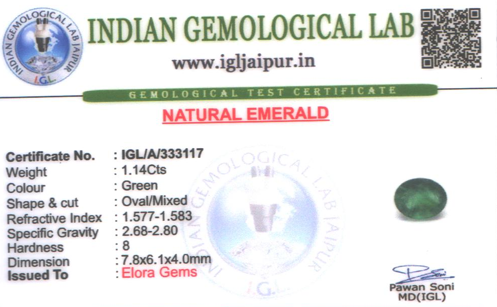 Natural Emerald (Maragadham) weighing 1.14 carats In Oval from Zambia