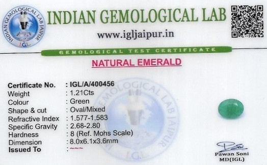 Natural Emerald (Maragadham) weighing 1.21 carats In Oval from Africa