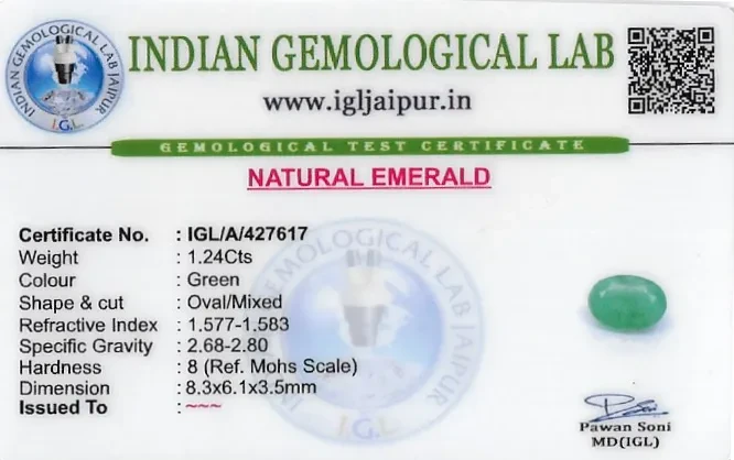 Natural Emerald (Maragadham) weighing 1.24 carats In Oval from Brazil