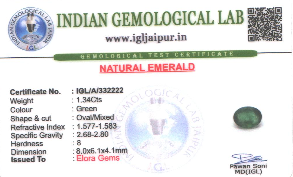 Natural Emerald (Maragadham) weighing 1.34 carats In Oval