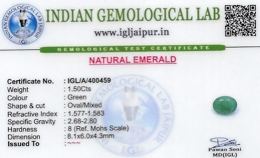 Emerald (Maragadham) 8x6 MM 1.5 carats