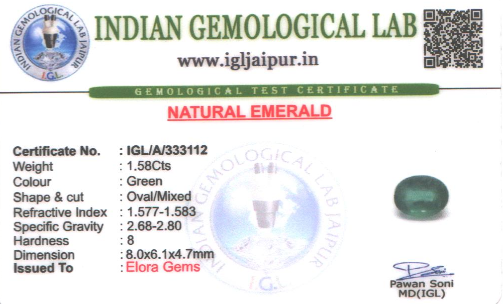Emerald (Maragadham) 8x6 MM 1.58 carats